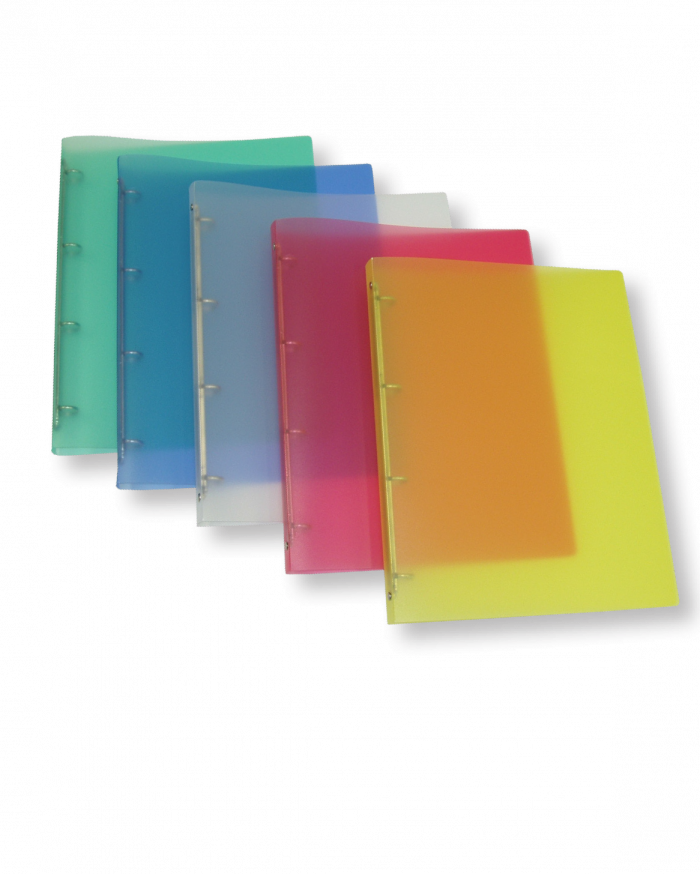 Ringbuch im Format A4, Rückenbreite 20 mm und 4-Ringmechanik. Hergestellt aus milchig transparentem Polypropylen Elegance, in vielen Farben erhältlich. Deckelformat: 250x313 mm